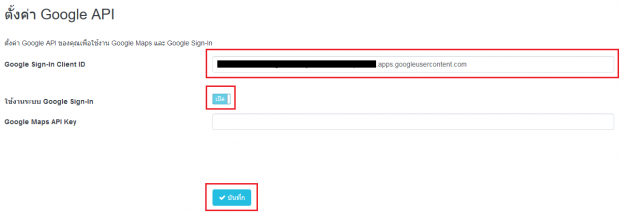 10. Enter the Client ID value into the Google Sign-In Client ID field on the Google API Settings page and then set to enable the Google Sign-In system.