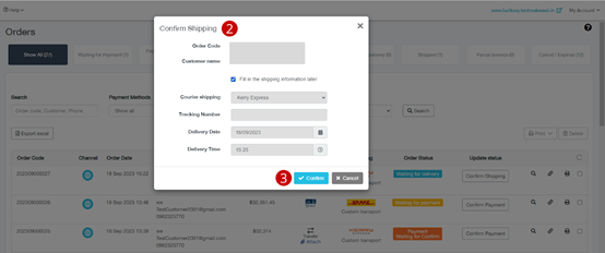 7. The status of the ordered goods will change to “Wait for delivery” automatically click the “Confirm Shipping“ button.