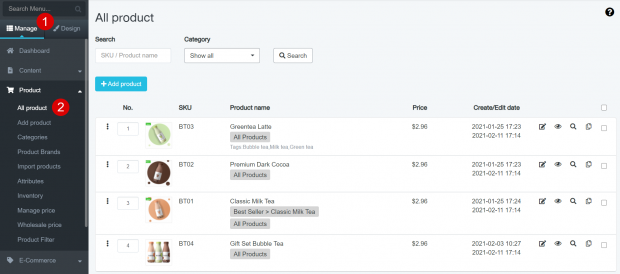 2. Select Product > All Products