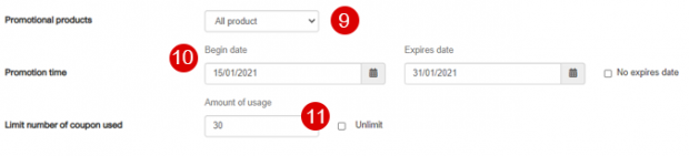 11. Atur batas pemakaian kupon, jika tidak ada batasan pilih tidak terbatas