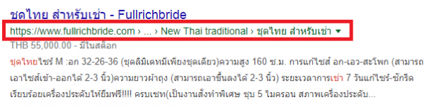 ยกตัวอย่างเช่น เราตั้งชื่อหมวดหมู่ หรือ ชื่อสินค้า เป็น ชุดไทย สำหรับเช่า เวลาลูกค้า Search นอกจากเราใช้เครื่องมือ Breadcrumb เมนูที่ช่วยนำทางในเว็บไซต์แล้ว เรายังใช้ชื่อหมวดหมู่หรือชื่อสินค้า เป็นคำค้นหา Keyword โอกาสที่เว็บไซต์ของเราจะอยู่ในอันดับ SEO ที่ดีก็มีมากยิ่งขึ้น