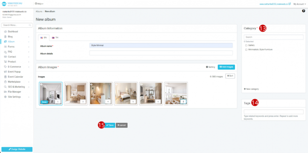 3.กรอกชื่ออัลบั้มรูป และคำอธิบายอัลบั้ม