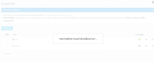 7. เมื่อเสร็จแล้วเราจะได้ระบบภาษาที่เราเพิ่มเข้าไป ขึ้นมาแสดงต่อท้าย ในกรณีที่อยากเปลี่ยนเป็นภาษาเริ่มต้นของเว็บ ให้ติ๊กเครื่องหมายถูกเลือกเป็นภาษาเริ่มต้น (ระบบภาษาจะเป็นให้เฉพาะข้อมูลที่เป็นระบบ ข้อมูลในส่วนของฝั่งลูกค้าจะต้องกรอกข้อมูลเข้าไปตามภาษานั้นเอง)