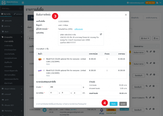 และนอกจากจะจัดการที่เมนูรายการสั่งซื้อได้แล้ว MakeWebEasy ได้เพิ่มเมนู รายการขนส่ง สำหรับจัดการขนส่งโดยเฉพาะ ให้เจ้าของร้านได้ใช้งานได้สะดวกมากยิ่งขึ้น