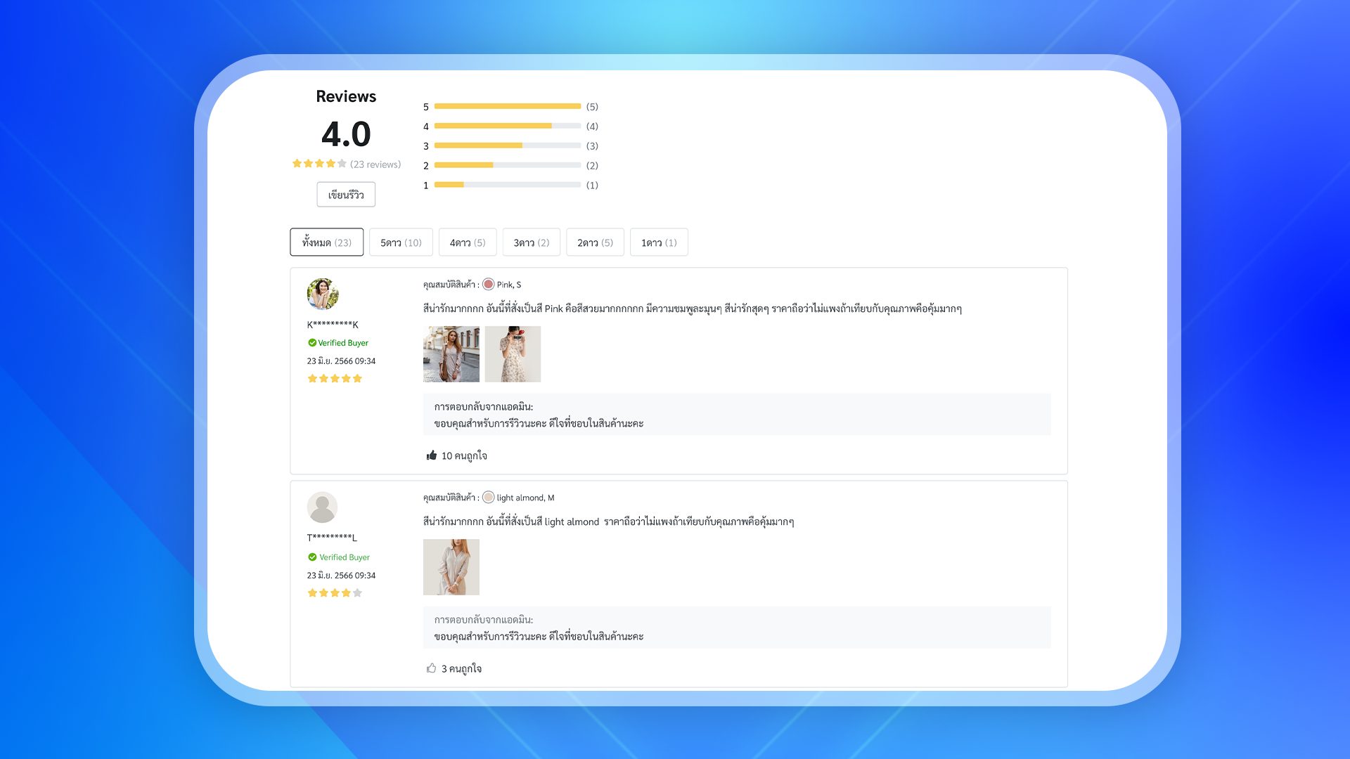 จัดการรีวิวและตอบกลับความคิดเห็นนั้นได้