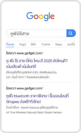 | ตำแหน่งการแสดงโฆษณา | Google Search Google Images Shopping Tab Google Display Network YouTube Gmail |
